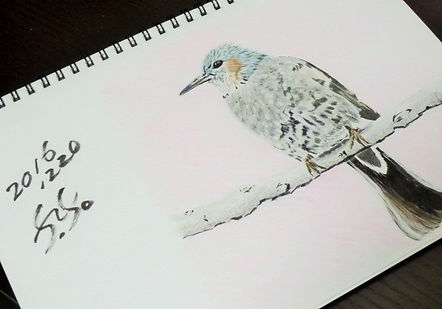 尾の部分や木の枝の影などは、一筆書きのように描きました。